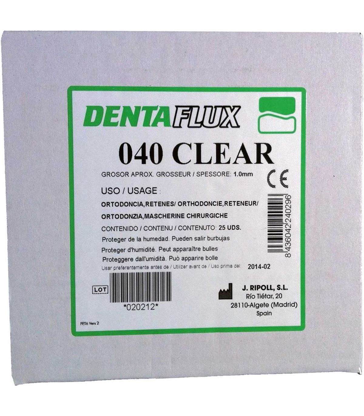 Placas rígidas transparentes para retenes de ortodoncia, férulas de relajación y de cirugía. Envase de 25 unidades. Plancha de 1 mm de grosor.