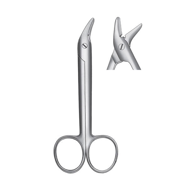 Tijeras para coronas de Carl Martin fabricadas en acero inoxidable de 12cm de longitud, anguladas. Especialmente indicadas para cortar metal.