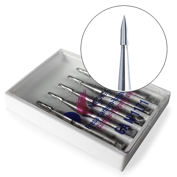 Diseñada para la apertura y conformación de cavidades, la fresa de carburo de tungsteno Medicaline nº 7901 también está indicada para el acabado de restauraciones de composite y amalgama.