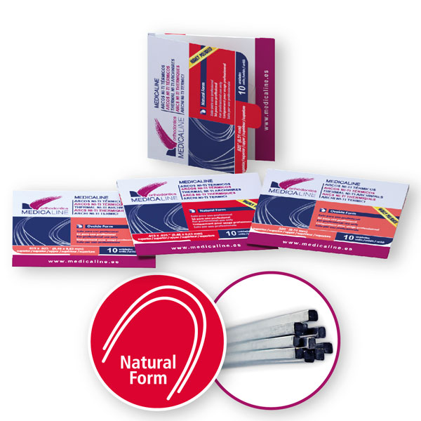 Existen 12 modelos diferentes (6 tamaños para la arcada superior, y 6 tamaños para la arcada inferior). Los arcos de Medicaline se presentan en envases de 10u.