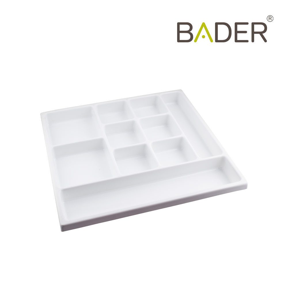 • Bandeja cajonera con separaciones. Plástico rígido blanco.