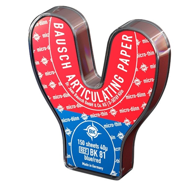 Papeles de oclusión microfinos de 40 micras. son papeles muy finos recubiertos por ambas caras con tintas líquidas. Debido a su pequeño grosor, estos papeles muestran un comportamiento de marcado extremadamente preciso. De este modo, se reducen significativamente los contactos defectuosos o borrosos.Su recubrimiento especial con tintas líquidas permite marcar claramente todos los contactos oclusales, incluso sobre materiales difíciles de comprobar, como las cerámicas, las aleaciones metálicas, las resinas y las superficies oclusales humedecidas con saliva.Su recubrimiento cromático especial consiste en una infinidad de pequeñas microcápsulas rellenas de pigmentos.Incluso con una ligera presión de masticación, las cápsulas se abren y liberan el color de forma claramente visible. También permiten marcar de forma repetida, ya que el recubrimiento de color posee un volumen de tinta elevado.Envase de herradura, color azul y azul. 150 unidades.