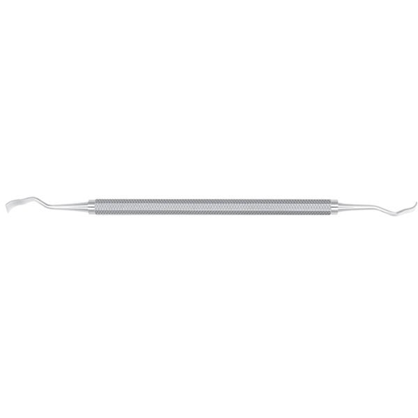 El cincel periodontal 13K/13KL se utiliza para recontornear el hueso periodontal o para eliminar las fibras dentales restantes durante la cirugía periodontal con extremos de trabajo curvos de 3,2 mm y 4,9 mm de ancho.
