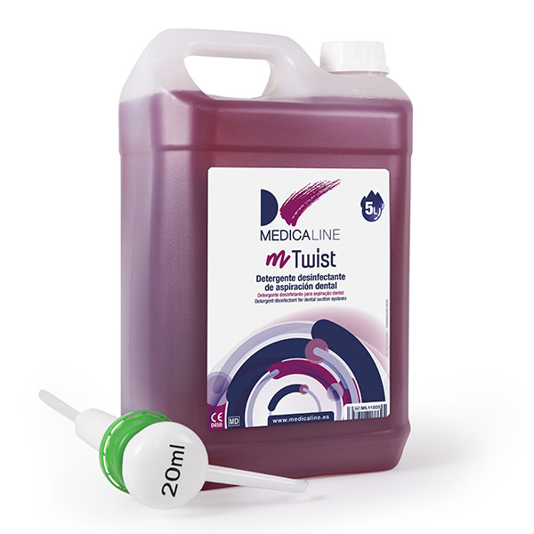 Desinfectante mTwist Medicaline para la aspiración de los equipos dentales con olor agradable. Para limpieza de sistemas dentales de todo tipo y encimeras de sillones dentales.