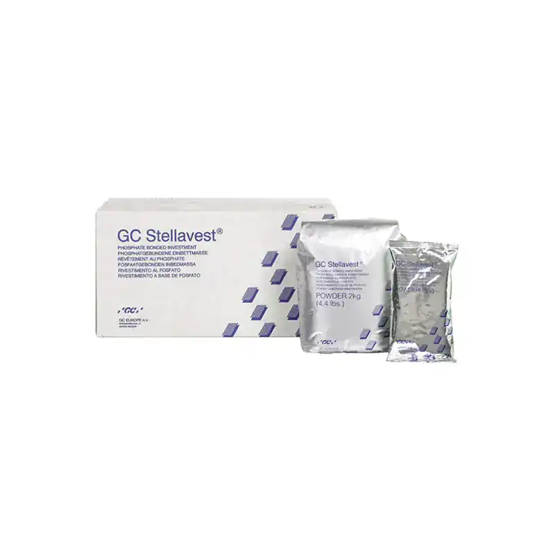 Stellavest de GC es un material en polvo para revestimientos fosfatados, sin carbono, para realizar prótesis fija.