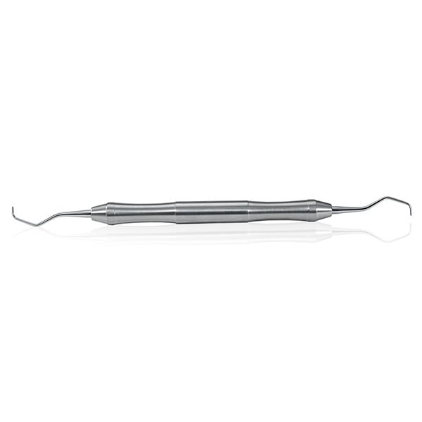 Es una cureta ligeramente angulada y con una parte activa de mayor longitud para acceder a las zonas más difíciles.