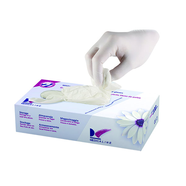Los guantes de nitrilo blanco de Medicaline se presentan en cajas de 100 unidades, a elegir tamaño entre los disponibles.
