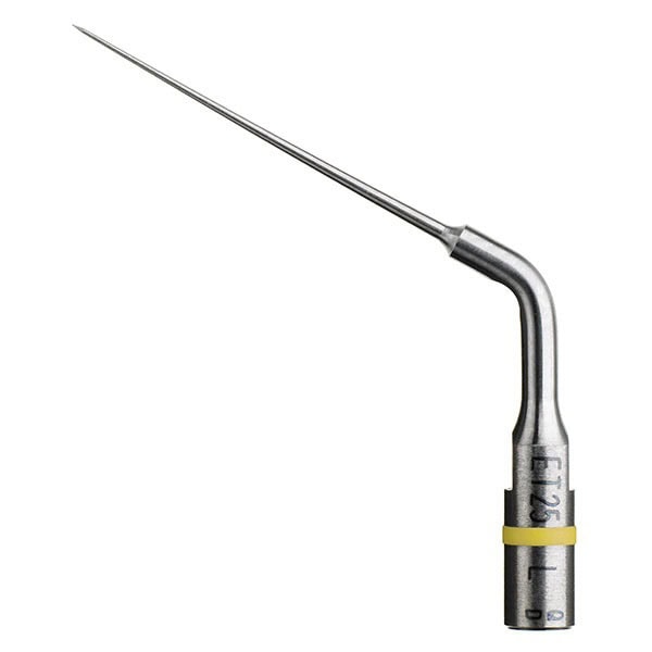 El inserto ET25L está diseñado para la reanudación no quirúrgica de los tratamientos endodónticos.Largo: 40 mm.El inserto de titanio-niobo sirve para la reanudación del tratamiento en el tercio medio y aplical y la extracción de instrumentos fracturados.La aleación del dispositivo medico contiene: titanio, aluminio y niobio.