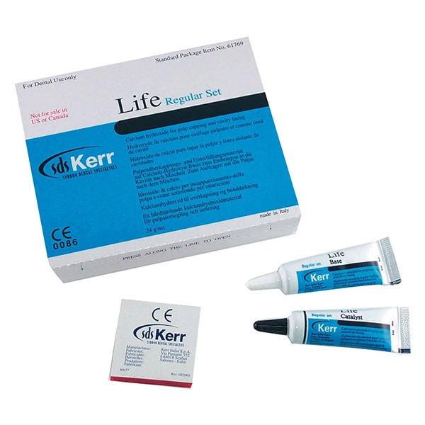 Life Regular de Kerr es un cemento para fondo de cavidad a base de hidróxido de calcio, resistente al grabado ácido, que protege la pulpa contra los choques térmicos.