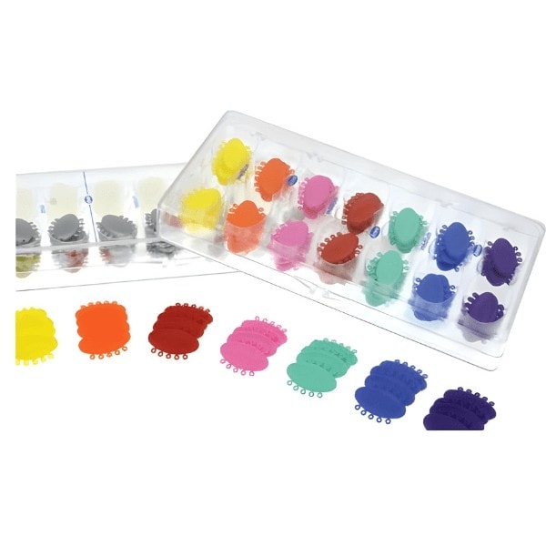 El envase de las ligaduras Leone contiene 200 piezas (20 mini módulos, 10 ligaduras de cada uno).