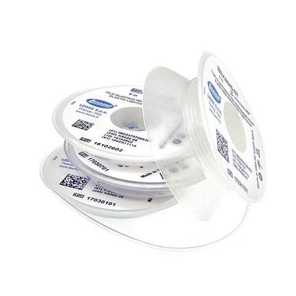 De poliuretano atóxico, muy elástico.La superficie rugosa favorece la resistencia de las ligaduras y de los nudos de las tracciones.