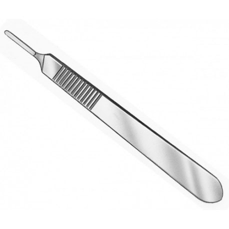 Mango de bisturí de instrumento metálico plano y corto para colocar hojas de bisturí.