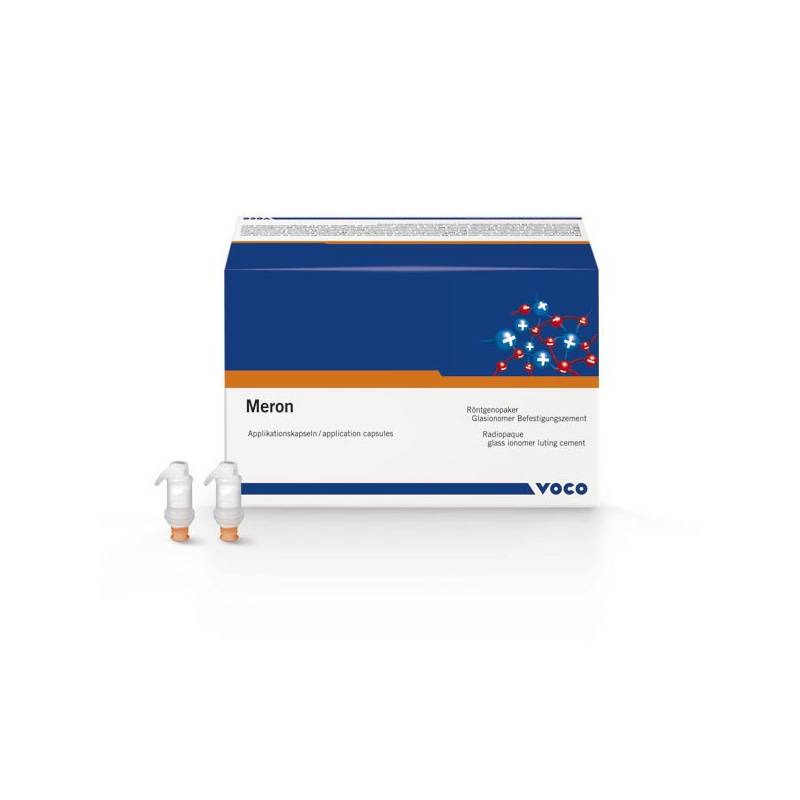 El cemento definitivo Meron de Voco es un cemento de fijación a base de ionómero de vidrio. Radiopaco.
