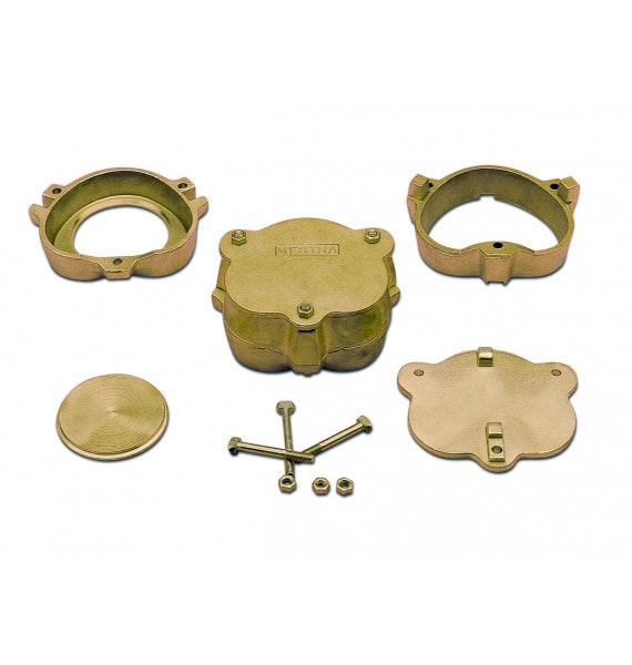 FORMADA POR TRES PIEZAS, CON PLACA Y ORIFICIO EXPULSOR EN SU BASE. DIMENSIONES INTERIORES: 100 X 85 X 46 MM. MATERIAL: LATÓN