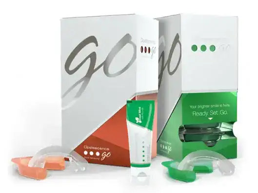 Opalescence ® Go es un sistema de blanqueamiento dental para usoen casa, controlado y supervisado por el dentista, dispensado en cubetaspredosificadas descartables. Es un gel claro con sabor a melón, altamente viscoso ypegajoso de peróxido de hidrógeno al 6% con nitrato de potasio y fluorurode sodio.Nuevo sistema de dispensación que permite a los pacientes abrir la caja, girar la tapa y coger cada blister individual con facilidad.